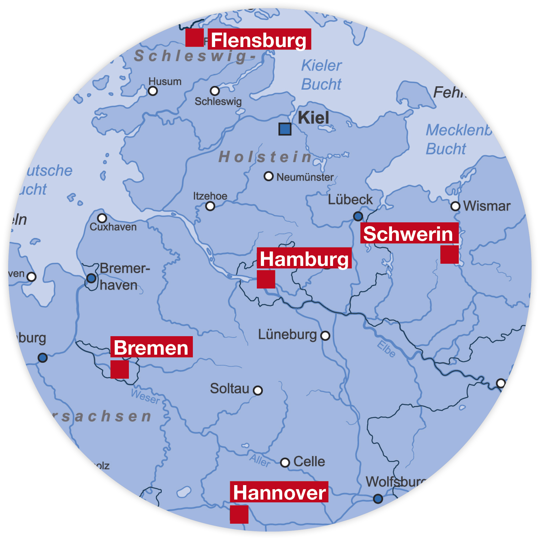 Wenn wir von Erreichbarkeit sprechen, dann meinen wir das auch so. Gerade weil es oft auf eine schnelle Reaktionsfähigkeit ankommt, haben wir unseren Wirkungskreis auf einen Umkreis von 150 Kilometern beschränkt – damit wir zuverlässig bei Ihnen vor Ort sein können. Denn wir meinen, Kundennähe darf nicht am Telefon aufhören!